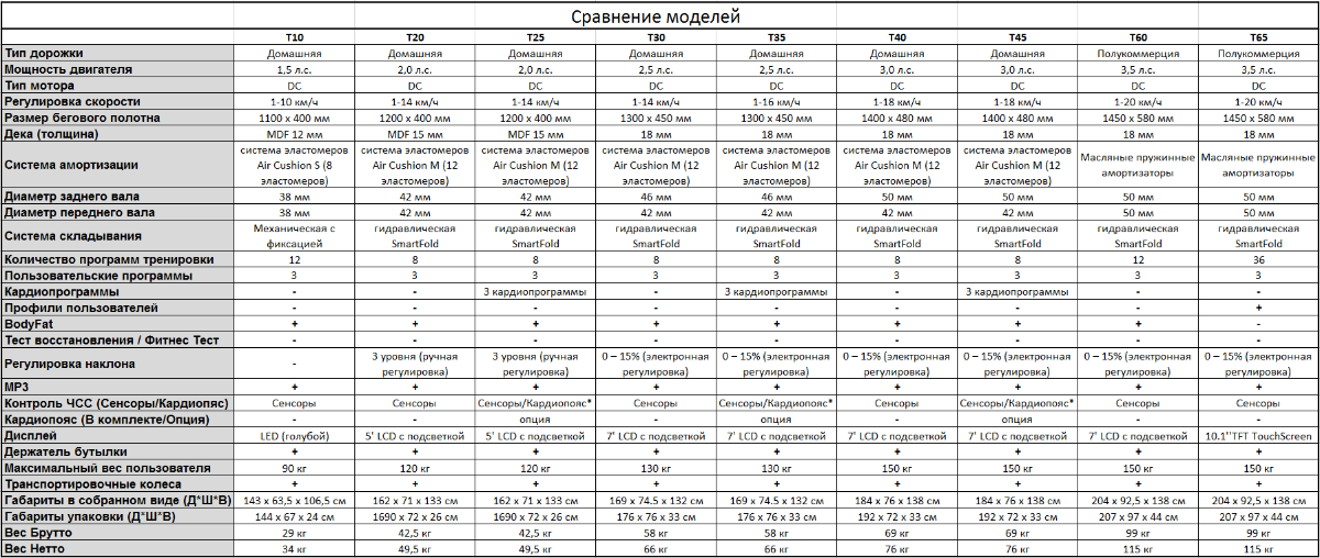 Модель оснащена компактным гидравлическим механизмом складывания SmartFold с функцией плавного опускания, что позволяет легко сложить и разложить беговую дорожку, а в сложенном виде она занимает всего 85x71x140 см. (Д/Ш/В)