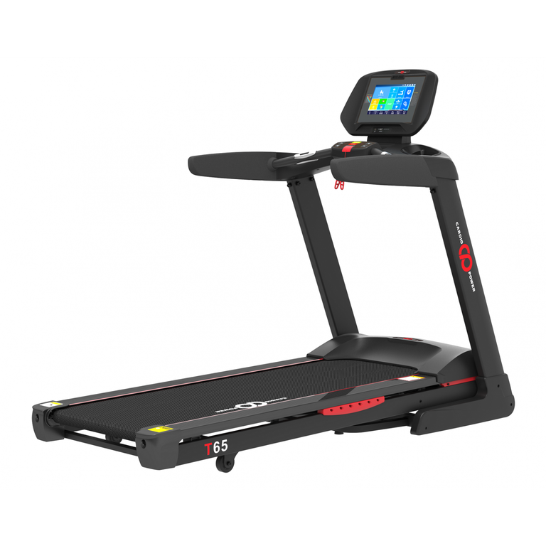 CardioPower T65 - стильная и функциональная беговая дорожка для занятий в домашних условиях. Самые современные технологии, усиленная рама и качественные комплектующие обеспечивают надежную эксплуатацию и отличные технические характеристики. Сенсорный мультимедийный дисплей обеспечивает продвинутые мультимедийные функции, и включает виртуальный ландшафт, возможность расширенного просмотра видео- контента, интернет браузер и приложение YouTube, а также фитнес программу FitShow.