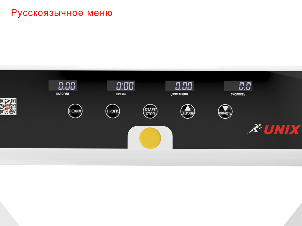 Устройство обладает интуитивно понятной панелью управления, которая отображает на себе такие параметры как скорость, дистанция бега, потраченные калории, время тренировки, пульс.