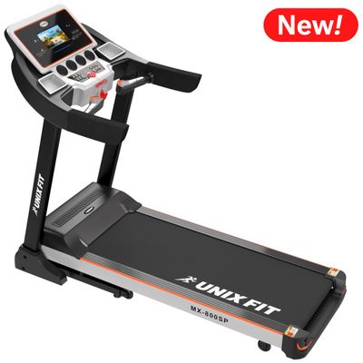 Беговая дорожка UNIXFIT MX-800SP – домашний тренажёр с расширенным беговым полотном для комфортных и эффективных домашних тренировок. Серия UNIXFIT MX – это сочетание в себе надёжности и высокого качества тренажёра, а также стильного дизайна, который легко впишется в вашу квартиру. Максимальный вес пользователя дорожки – 140 кг, размеры бегового полотна дорожки – 130х45.5 см, вес дорожки составляет 68 кг.