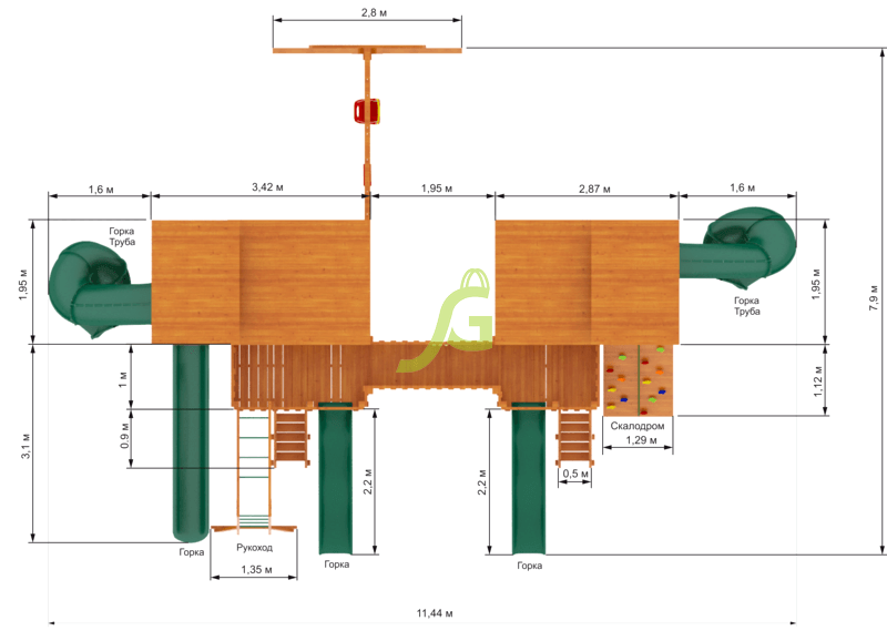 Тип ската: Горка-труба с высоты 2,1 метра / Скат с высоты 1,5 метра / Скат с высоты 2,1 метра