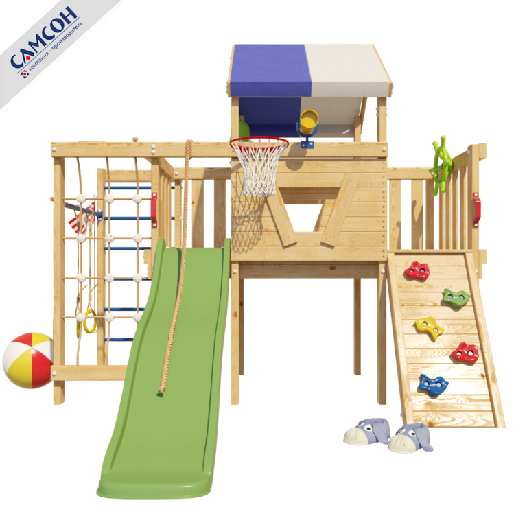 Комплекс изготавливается из массива сибирской сосны/лиственницы, все детали идеально отшлифованы. Изделие поставляется неокрашенным, для использования на улице необходимо обработать все деревянные элементы защитным покрытием для обеспечения длительного срока службы. За дополнительную плату можно заказать обработку на производстве, о чем нужно указать в заказе.