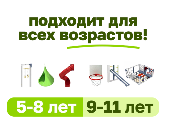 Площадка для гармоничного развития детей от 5 до 11 лет. Здесь найдется интересное и безопасное занятие для каждого возраста.