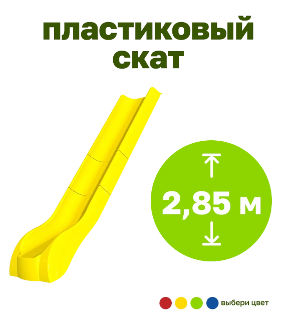 Пластиковый скат длиной 2,8 м с высоты 1,5 м — идеальное решение для комфортного катания детей.