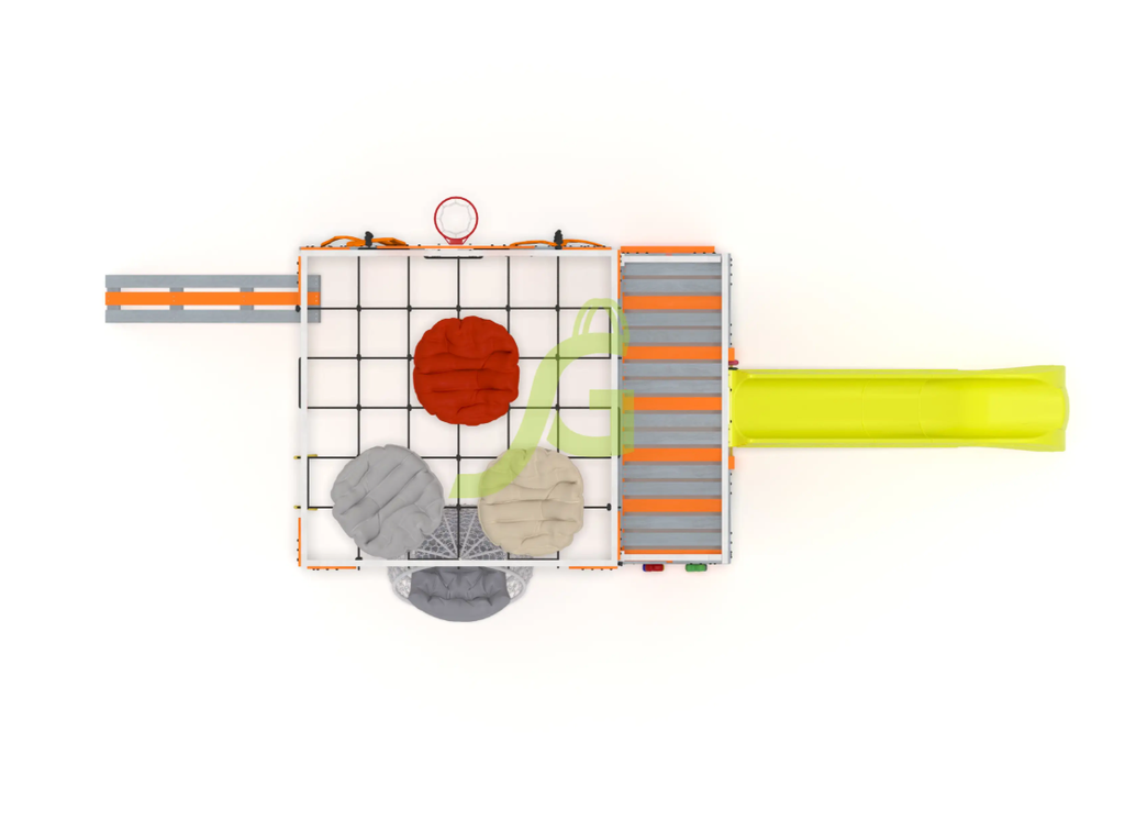 Уникальная релакс-зона на канатной сетке — это пространство для отдыха на крыше игрового комплекса. Здесь можно удобно расположиться на мягких подушках и наблюдать за игрой других детей.