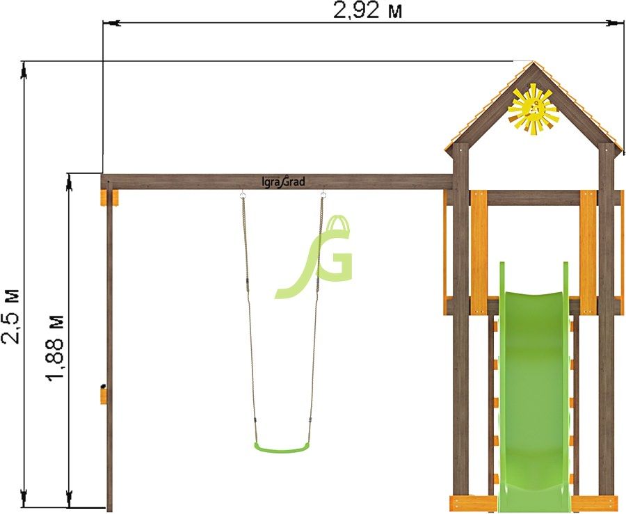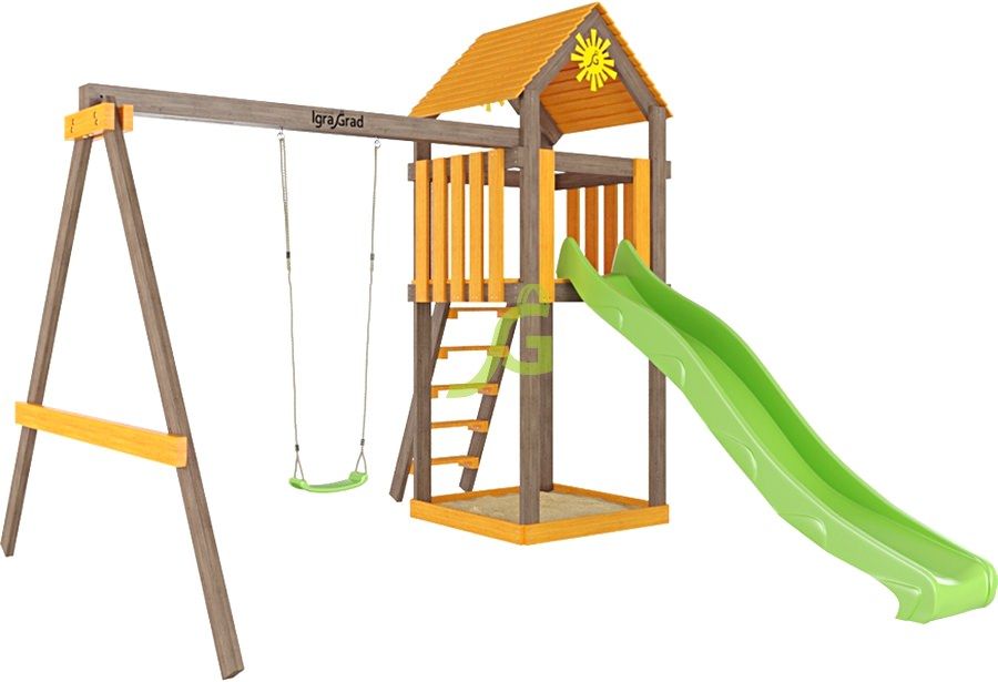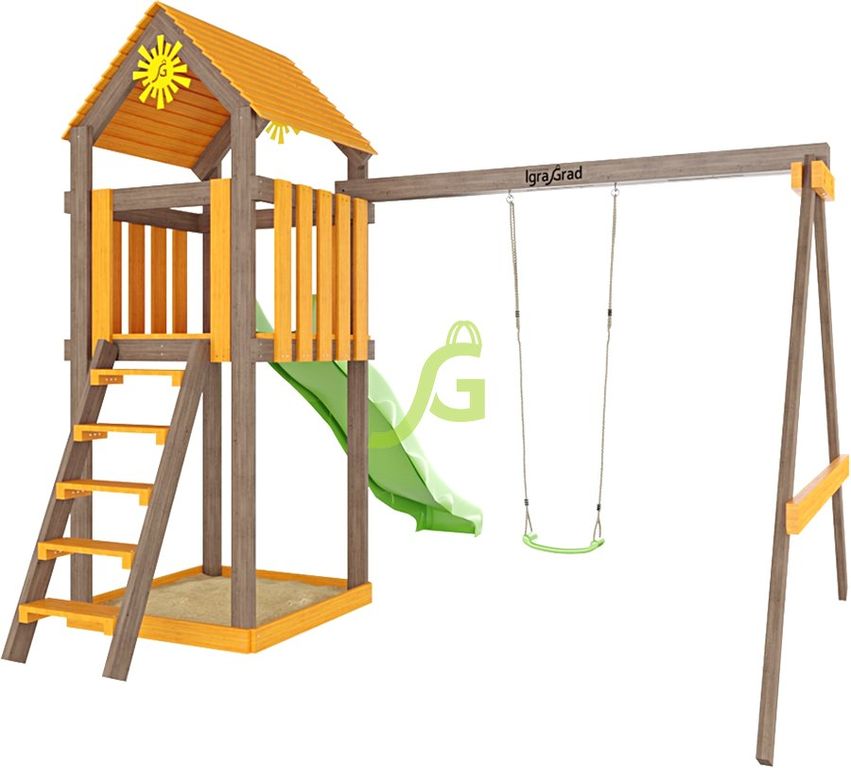 Детская площадка IgraGrad Игруня 1 украсит ландшафтный дизайн, а каждодневные игры на ней благотворно повлияют на здоровье вашего ребёнка.