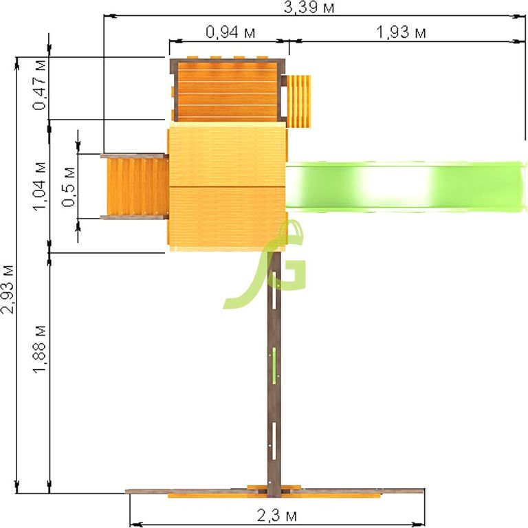 - качельный модуль, размещающийся на достаточно безопасном расстоянии от домика;