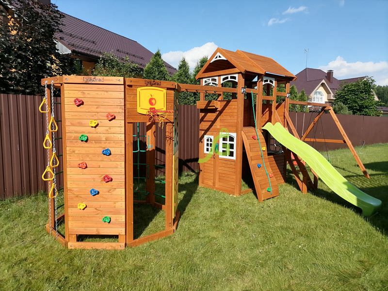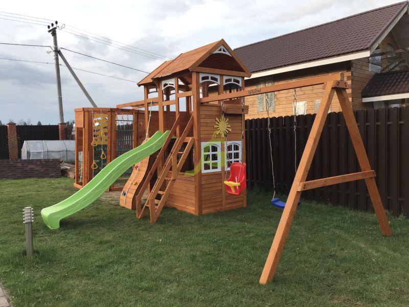 Детская площадка поставляется частично собранной, за счет щитовой конструкции, имеет сертификаты качества и всю сопроводительную документацию. В комплект входит подробная иллюстрированная инструкция по сборке.