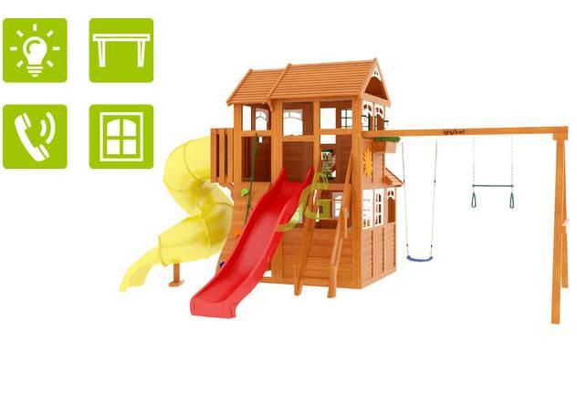 При конструировании были учтены все требования безопасности и использованы только экологически чистые материалы. Крепления и комплектующие от европейских производителей – залог долговечности и надёжности. «Клубный домик 3 с трубой Luxe» поставляется в частично собранном состоянии, ввиду чего сборка не составит труда и не займёт много времени, это отличная детская площадка для дачи, частной территории или дворика коттеджного посёлка.