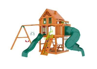 Детская площадка «Шато с трубой» (Домик) предоставляет детворе массу увлечений. Конструкция в виде двухуровневого домика оборудована не только окошечками, крышей, трубой, но и многочисленными спортивными элементами от американского производителя.