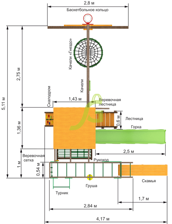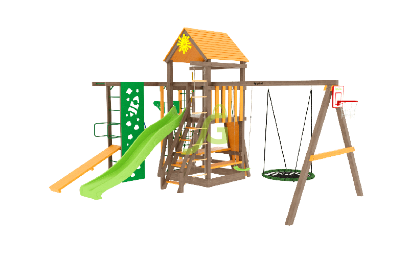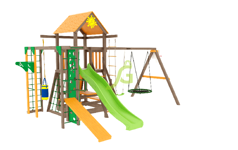 Обращаем Ваше внимание, что цвет установленной детской площадки может отличаться от представленных изображений на сайте. Специфика окраски нетоксичными пропитками допускает отклонения в цветовой гамме отгружаемых изделий вследствие различного цвета натурального природного сырья и естественных компонентов, используемых для производства площадок.