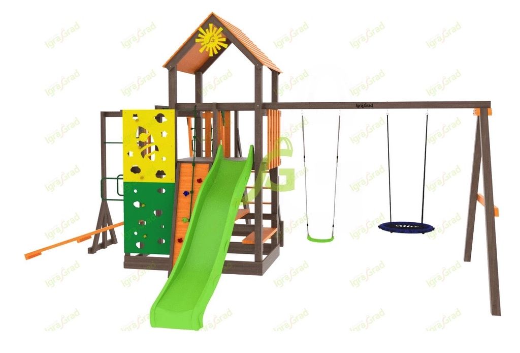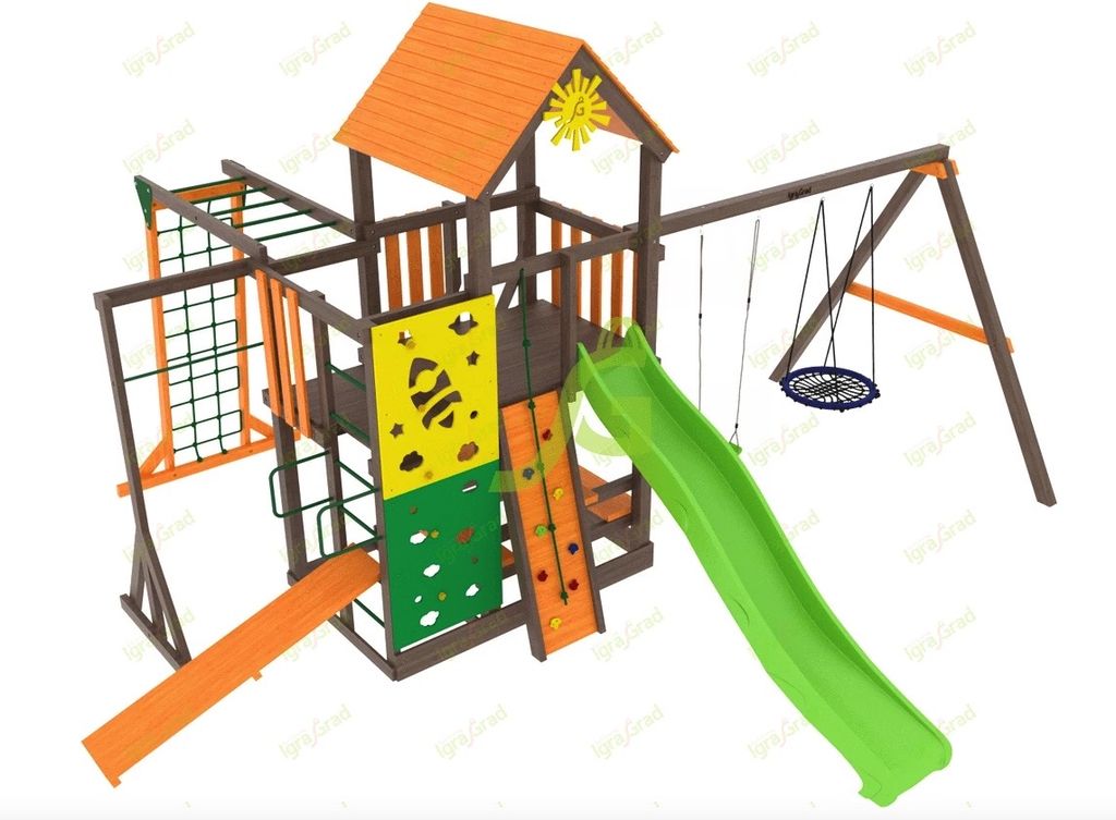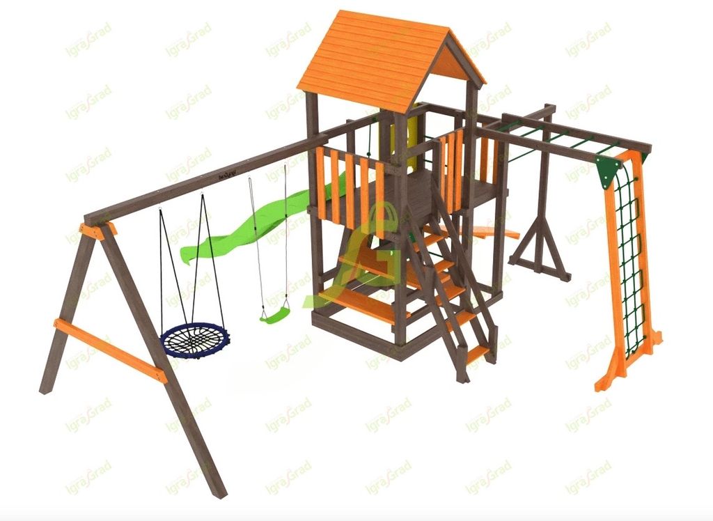 Обращаем Ваше внимание, что цвет установленной детской площадки может отличаться от представленных изображений на сайте. Специфика окраски нетоксичными пропитками допускает отклонения в цветовой гамме отгружаемых изделий вследствие различного цвета натурального природного сырья и естественных компонентов, используемых для производства площадок.