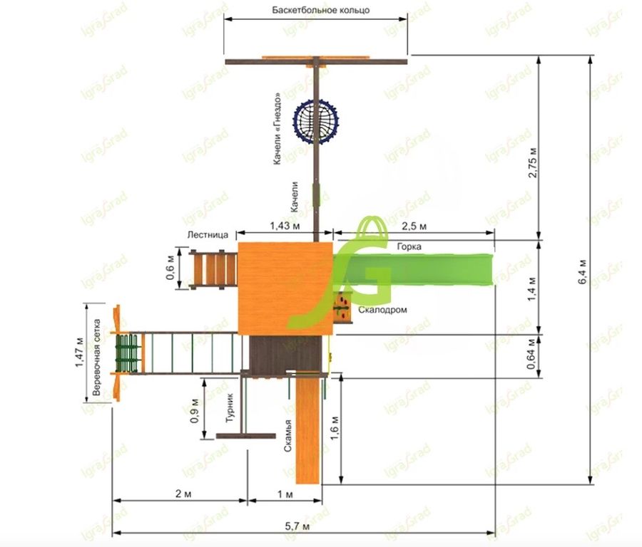 В состав детской площадки IgraGrad Спорт 4 входит: