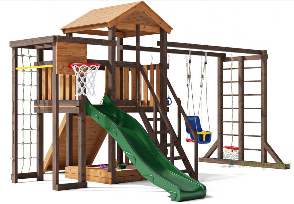 Древесина покрыта специальной пропиткой для защиты дерева от внешней среды: осадков, ультрафиолета и грибка. Мы используем для обработки дерева только сертифицированные экологичные составы на водной основе, безопасные для детей. Помимо защиты, такая пропитка придает городку приятный внешний вид. Цветовая гамма: Золотой тик - Орех. Контрастные оттенки натурального дерева отлично сочетаются друг с другом, а также довольно универсальны и будут гармонично смотреться на участке.