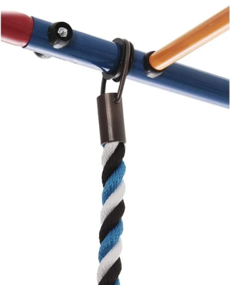 Качели имеют цепное крепление с карабинами, за счет чего их можно регулировать по высоте и наклону. На горизонтальных перекладинах расположены подшипники, благодаря которым получается избежать скрипа и скрежета.