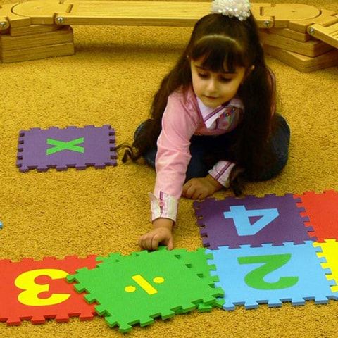 Коврик-пазл развивающий «Математика» развивает внимание, память, логику и мелкую моторику. С этим ковриком ребенок не только запомнит все цифры, но и научится правильно складывать пазлы. Плотный влагоустойчивый материал без запаха допускает использование коврика в ванной или на кухне. Занимает мало места, если разобрать: снабжен полиэтиленовой сумочкой на молнии, в которую быстро собираются все детали. Коврик можно мыть, используя бытовую химию. Яркие цвета привлекут внимание малыша: зеленый, желтый, красный и синий - спокойных тонов, не раздражают глаза. Мягкая текстура приятна на ощупь.