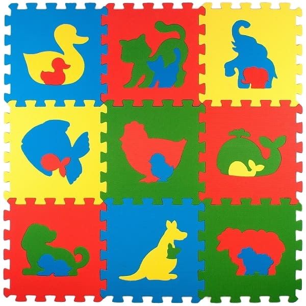Детский развивающий коврик-пазл "Животные" 33х33х0,9 см из мягкой пенки EVA