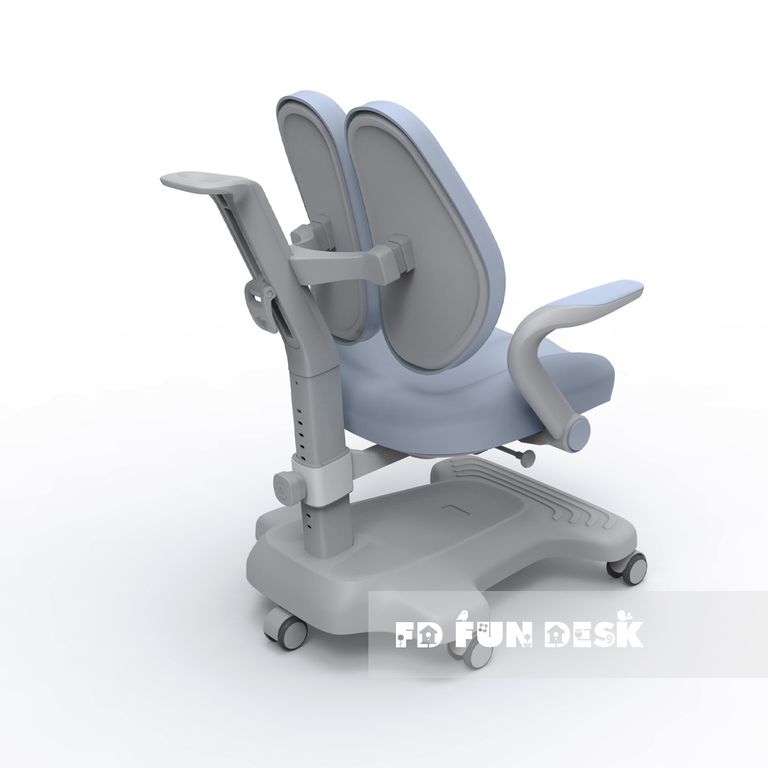 Кресло Fundesk Estate отличное решение для организации пространства рабочего места для Вашего ребенка. Эргономичное кресло станет незаменимым помощником при многочасовых занятиях, чтении и развлечениях, так как бережно поддерживает спину ребенка. Кресло Fundesk Estate имеет ортопедическую спинку, которая состоит из двух половинок, что позволяет поддерживать спинку сидящего ребенка, в любом положении поворота корпуса. Для регулировки высоты спинки посадите ребенка на кресло, и установите ее таким образом, что бы она повторяла форму спины. Материал обивки достаточно прочный. Есть регулировка кресла под рост ребенка, благодаря рычагу внизу сиденья.