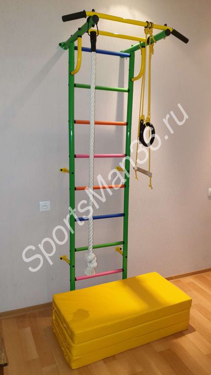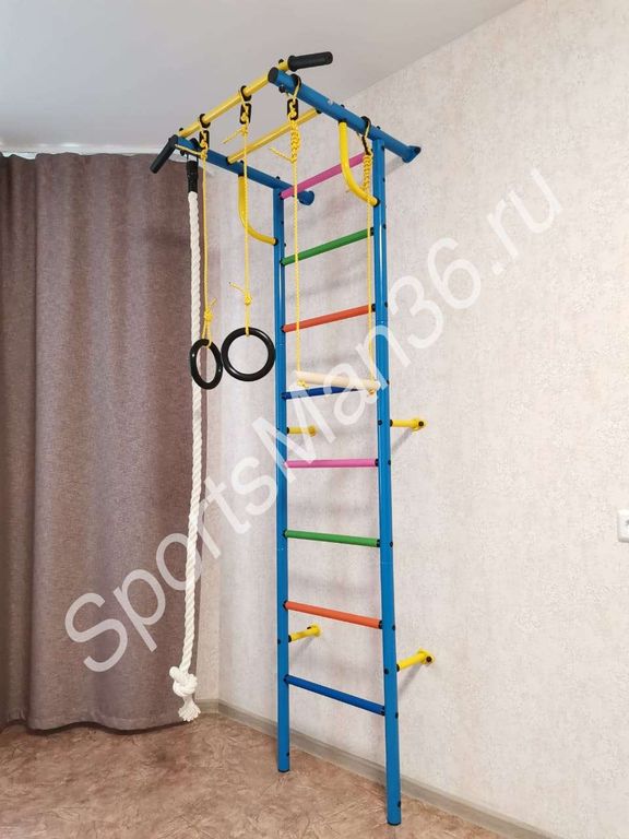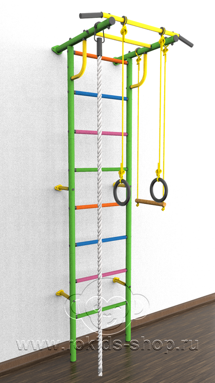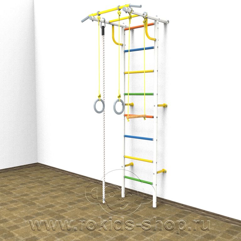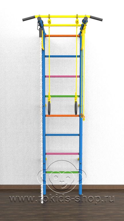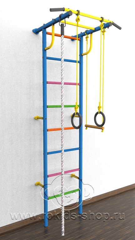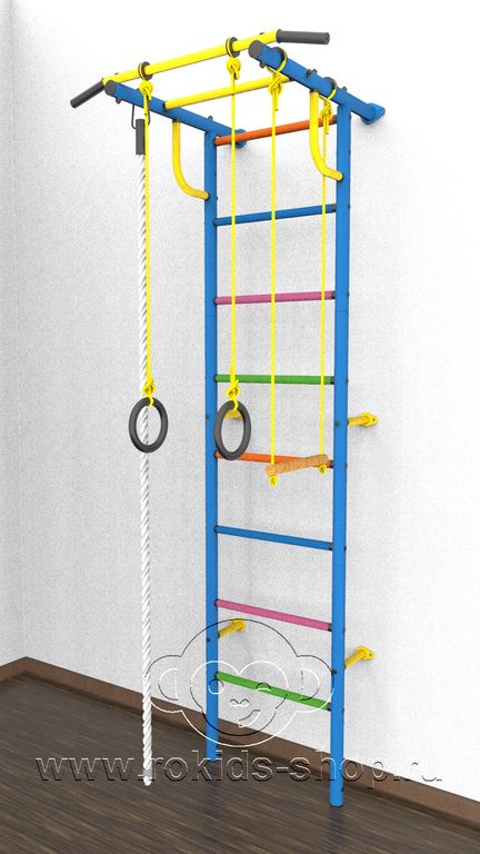 Детский спортивный комплекс "Роки-1ц" цветные ступеньки ПВХ от российского производителя ROKIDS - отличный вариант домашнего спортивного оборудования.