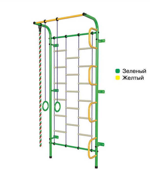 Комплектация: канат, кольца, турник-перекладина, шведская стенка с фигурными ступенями, комбинированная лестница.