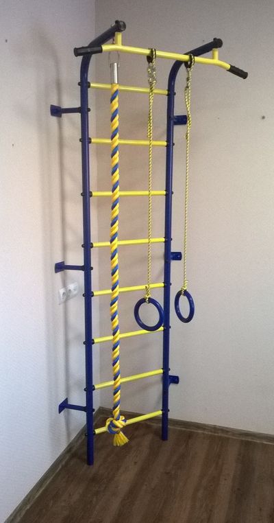 Детский спортивный комплекс с фиксируемым турником и предназначен для установки в угол помещения.
