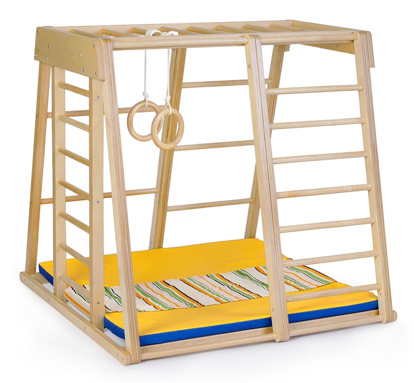 Боковая лесенка — интересное дополнение к спортуголку. Добраться до рукохода можно с любой стороны! Слезть с верхней части игрового уголка тоже поможет лесенка на боковой стороне.