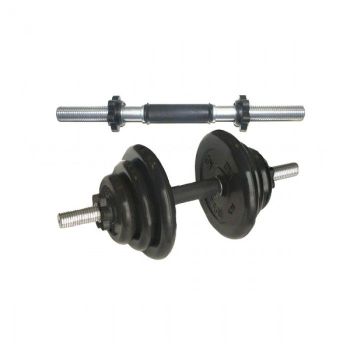Металлический стержень со свободно вращающимися втулками на концах, на которые надеваются съёмные металлические диски (не входят в комплект) для изменения веса штанги и замки для закрепления дисков. Применяются для занятий в бодибилдинге и фитнесе.