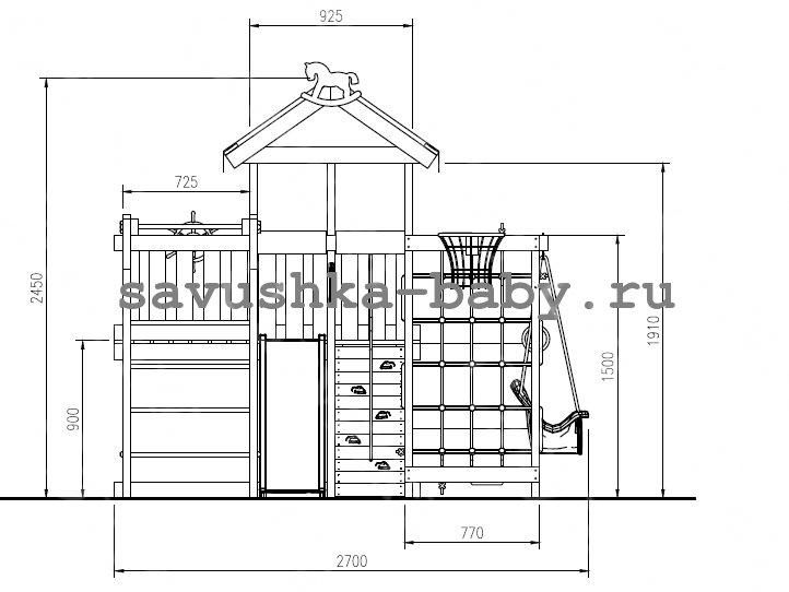 Предлагаем Вашему вниманию игровой комплекс - кровать САВУШКА BABY - 5. Он подойдет для семей с 2мя детьми, поскольку нижний уровень может использоваться и как игровой домик и как спальное место. Комплекс развивает координацию движений, ловкость, смелость, обеспечивает физическое развитие ребенка. Комплекс включает в себя много игровых компонентов и ребенок будет весело проводить время, играя на нем один или с друзьями.