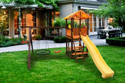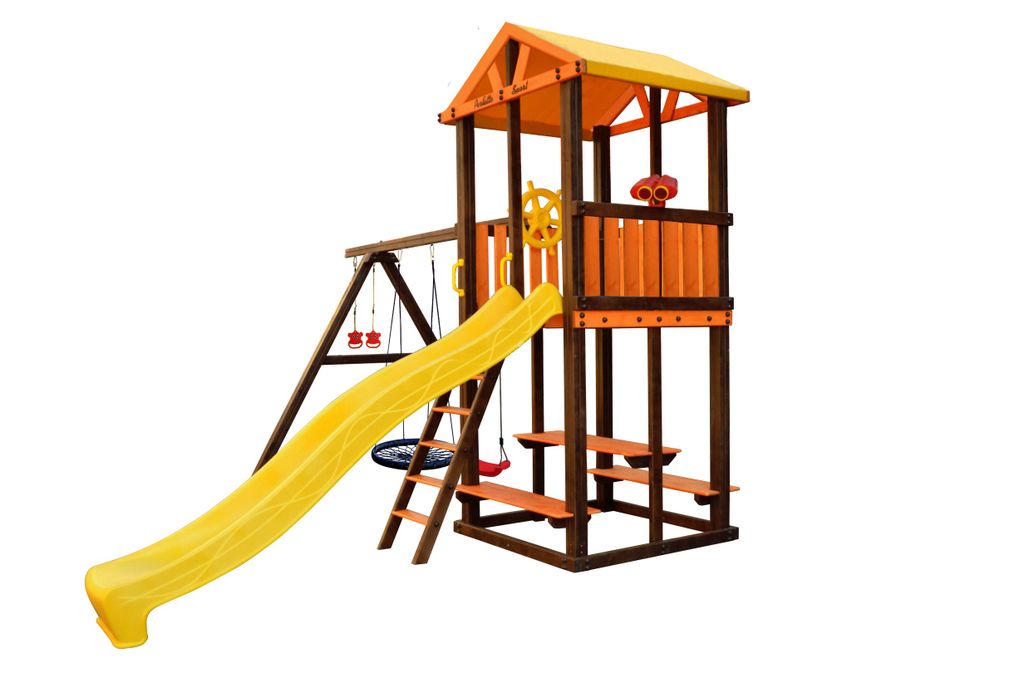 Детский уличный деревянный игровой комплекс Perfetto sport Bari 3 с качелями Паутина для детей от 3х лет.
