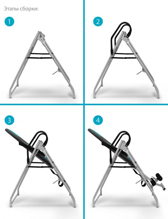 Для удобства использования стол имеет различные виды регулировки под рост пользователя от 150 до 197 см. Система бесступенчатого ограничителя угла наклона ремнем позволяет настроить оптимальный баланс для занятий. При резком возврате в исходное положение тренажера энергоемкий амортизатор поглощает удар об опорную часть.