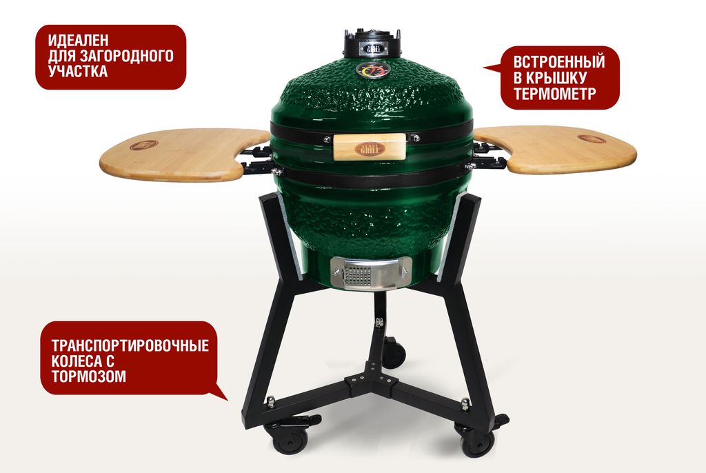 Керамический гриль, SG 16 PRO Green относится к премиальной линейке семейства керамических грилей Start Grill.
