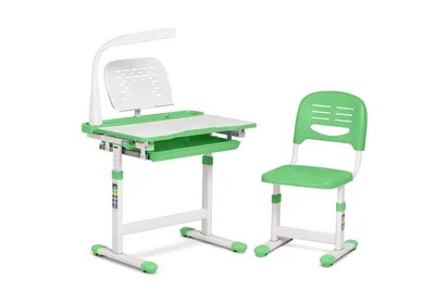 Школьный комплекс из парты и стула, регулируемых по высоте.