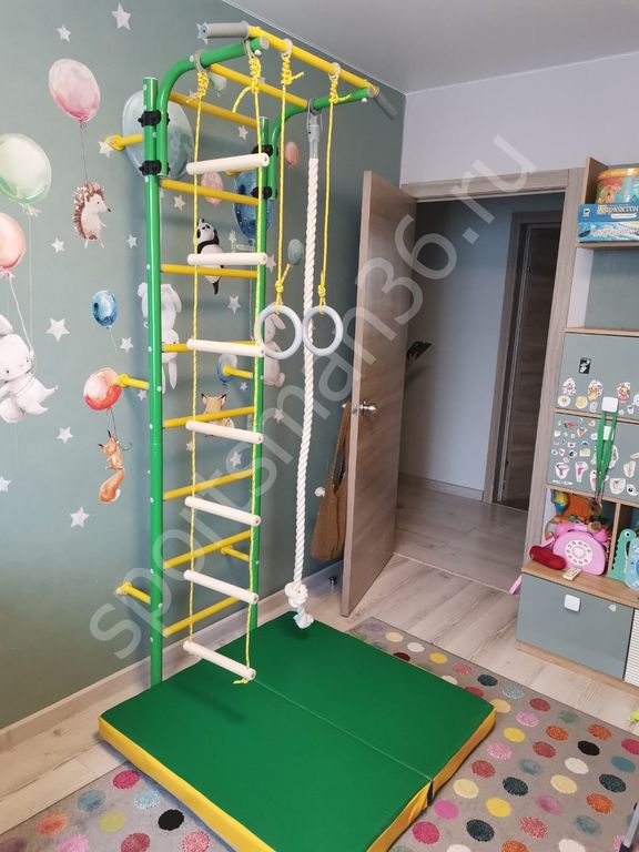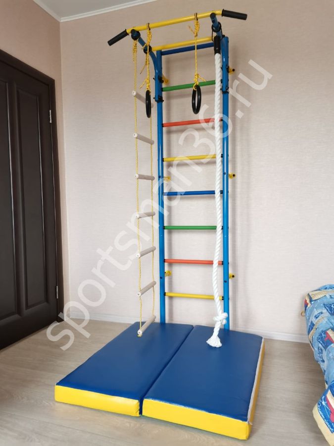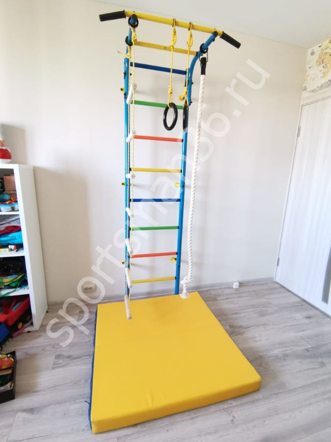 Гимнастический мат - представляет собой мягкое изделие, состоящее из чехла сшитого из винил-искожа и прочного поролона имеет особую прочность, используется для безопасности ребёнка при выполнении различных гимнастических упражнений или при падении с турника шведской стенки, домашнего комплекса.