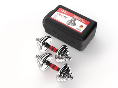 Набор состоит из двух гантелей общим весом 20 кг. Удобная разборная конструкция позволяет регулировать вес гантелей в процессе занятий, а эргономичная рукоятка сделает тренировку комфортной.