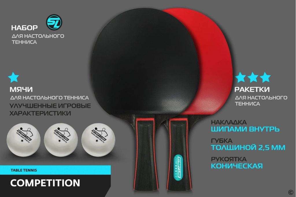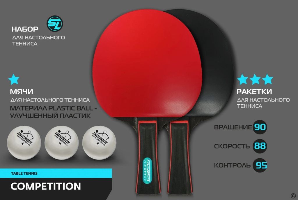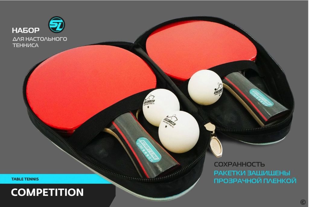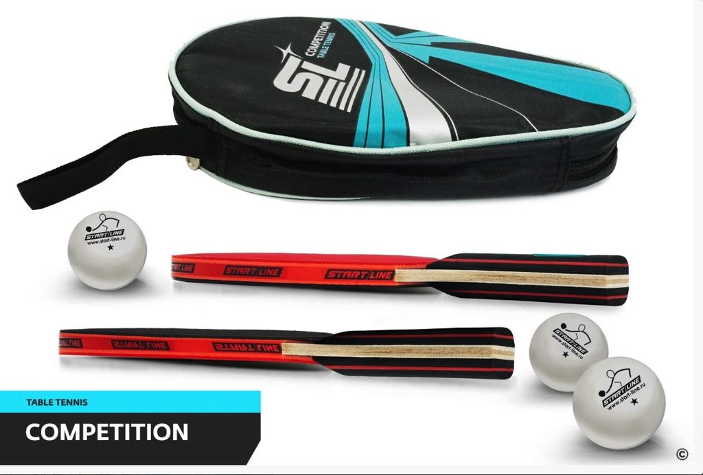 Набор для настольного тенниса Startline COMPETITION включает 2 ракетки и 3 мяча. Start Line заботится о сохранении продукции и удобстве игроков, поэтому набор упакован в компактную сумку с ручкой и замком-молнией. Набор удобно брать собой, а целостность инвентаря сохранится. Ракетки дополнительно защищены прозрачной плёнкой.