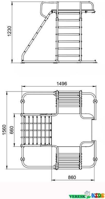 Длина, ширина, высота комплекса - 1,50 Х 1,50 Х 1,23 м