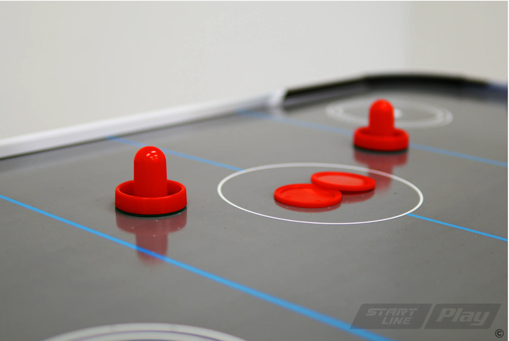Игровой стол имеет воздушный компрессор, который равномерно подает воздух через отверстия по всей поверхности стола. Поэтому шайба не будет застревать на поле в процессе игры и ваши впечатления останутся на высоте!