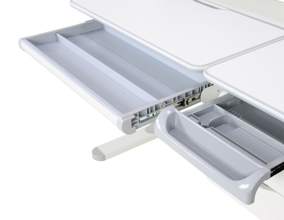 Широкая столешница разделенная на две зоны рабочую (наклонную) и статичную позволяет максимально эффективно использовать пространство во время учебы и развития вашего ребенка.