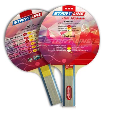 Ракетка для настольного тенниса START LINE Level 300 прямая соответствует высокому современному стандарту качества, имеет обновленный дизайн, а также улучшенные технологические и игровые характеристики.