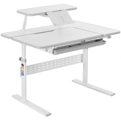 Растущая парта HOLTO-99 на все школьные годы для детей от 110 до 180 см. Столешница имеет Г-образную форму и позволяет одновременно изменять угол наклона и оставлять рядом горизонтальную поверхность. В комплекте выдвижной лоток для канцтоваров, удобная полочка и выдвижная подставка для книг. В ассортименте 3 цвета: серый, розовый и голубой.