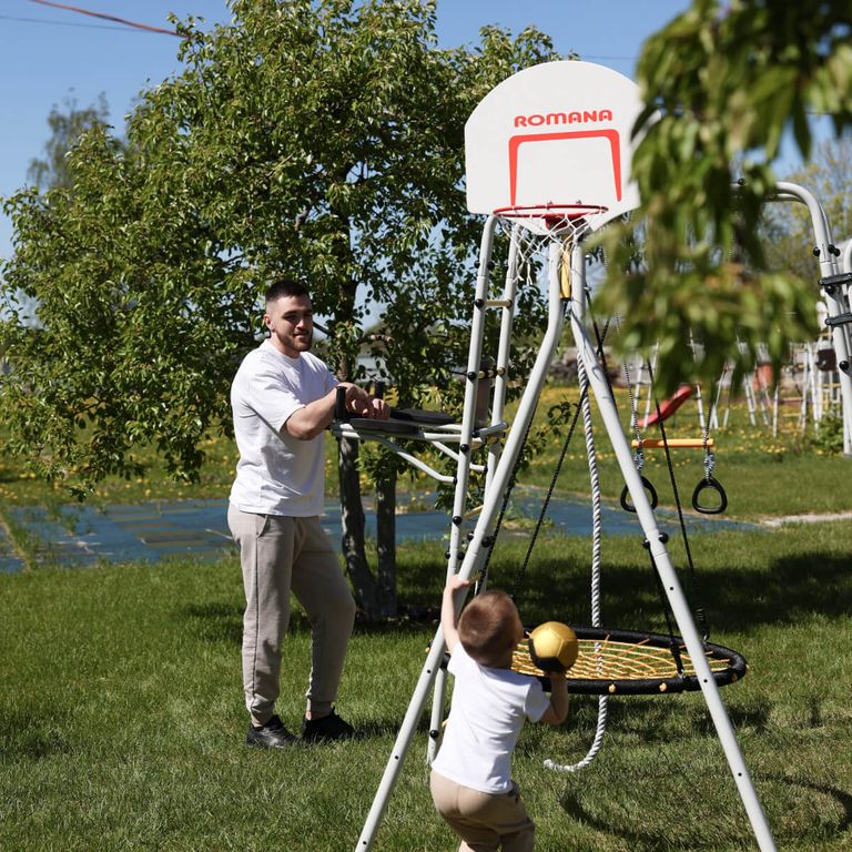 1.Д-04.03 – подходит ко всем дачным комплексам, имеющим отвод, устанавливается вне зависимости от общей сборке. Для этого в дачных комплексах, выпущенных с 2024 года, в отводах имеется отверстие. Баскетбольный щит так же можно установить на дачные комплексы с горизонтальной балкой (без отвода).