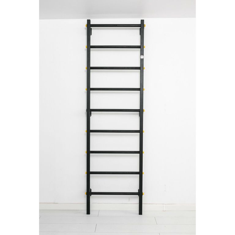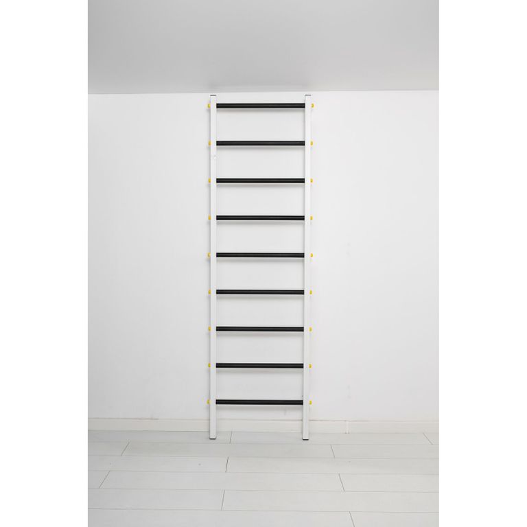 Прочная металлическая шведская стенка с креплением к стене и полу, не требует монтажа к потолку. Эту модель можно доукомплектовать любым необходимым навесным оборудованием (в комплект оно не входит).