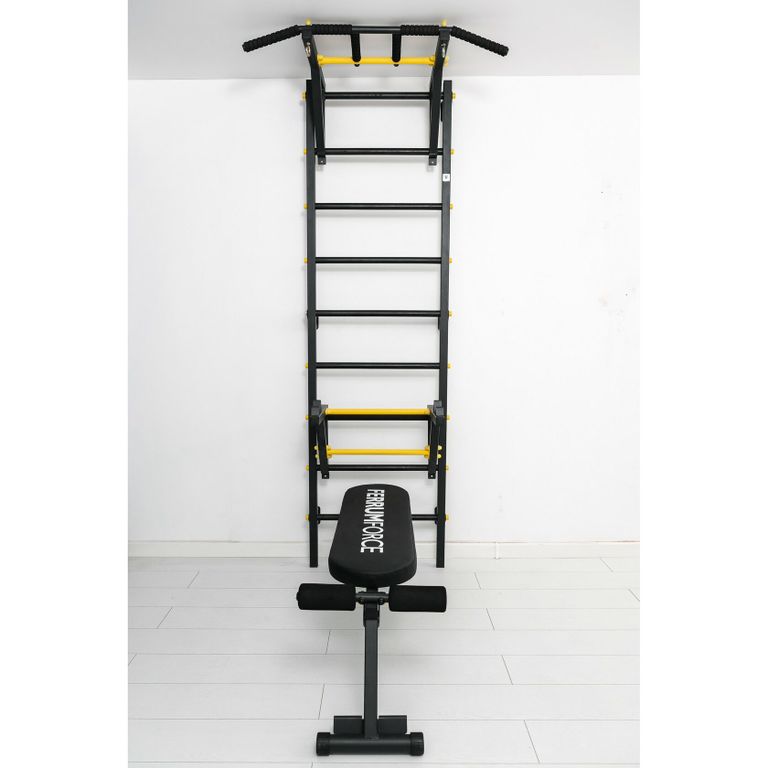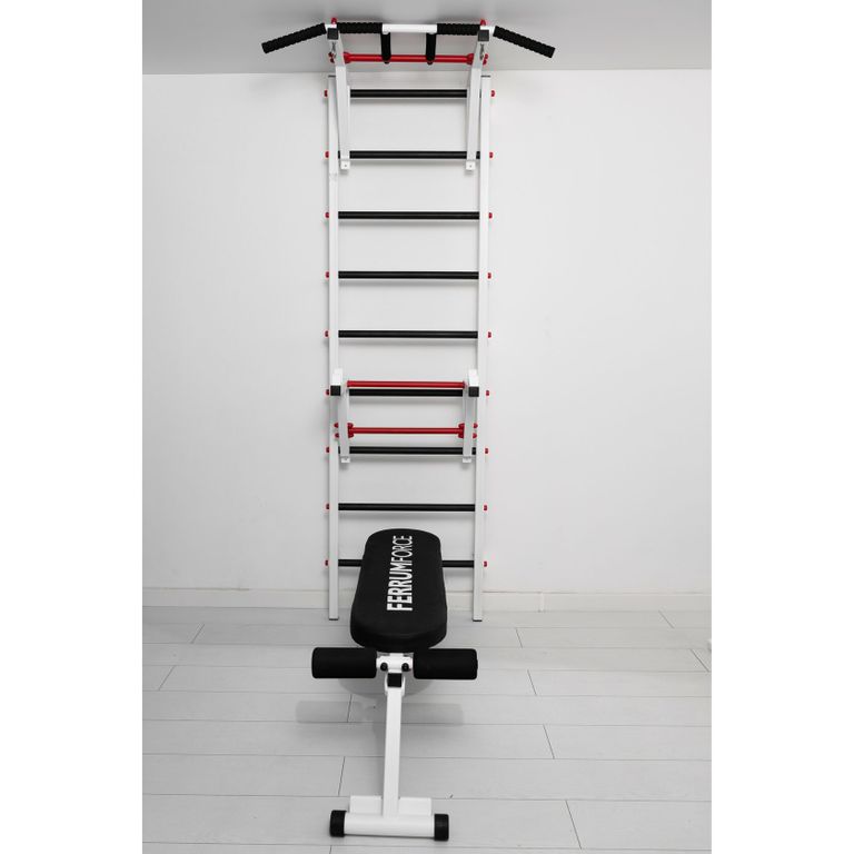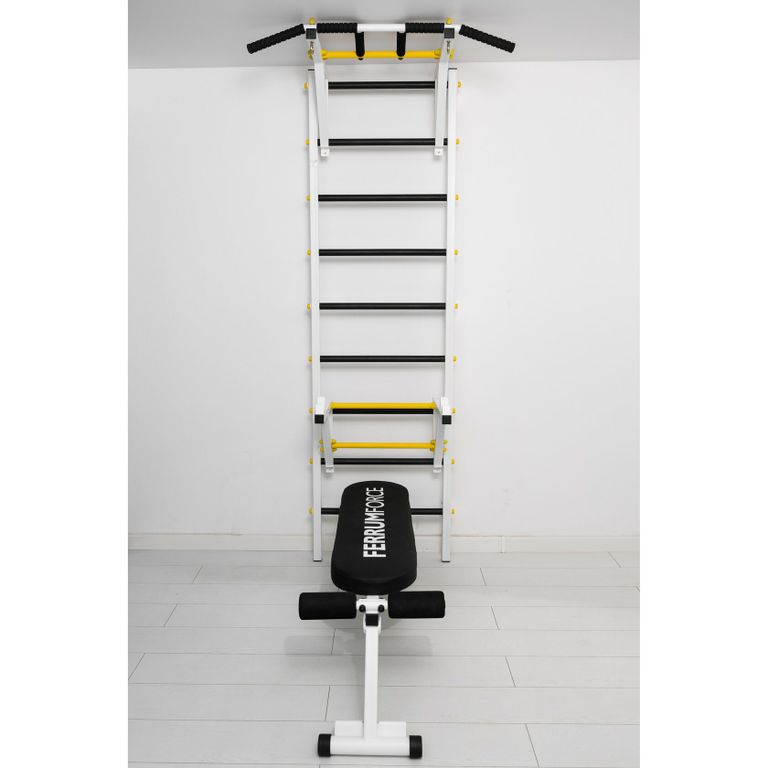 Шведская стенка Ferrum Force F4Артикул: F040010-123 890р.Цветчерный-красныйбелый-черный-желтыйбелый-черный-красныйчерный-желтый. Металлическая шведская стенка со съёмным турником (3 вида хвата). Навесное оборудование в комплекте - скамья для пресса и жима лёжа 2в1, держатель для штанги PRO.