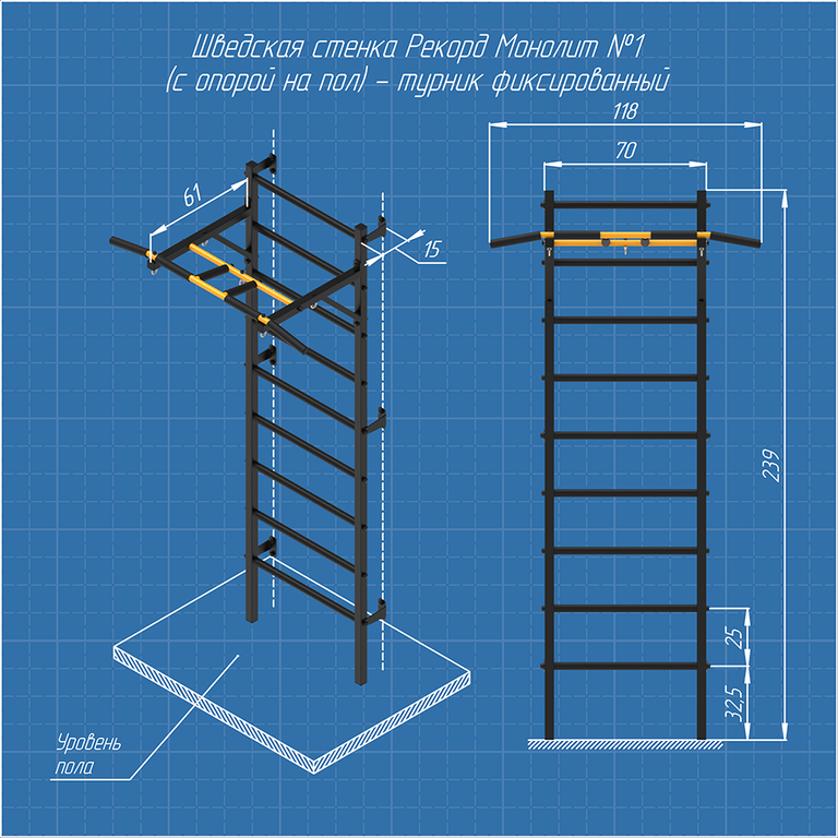 Шведская стенка с фиксируемым турником на 3 вида захвата.