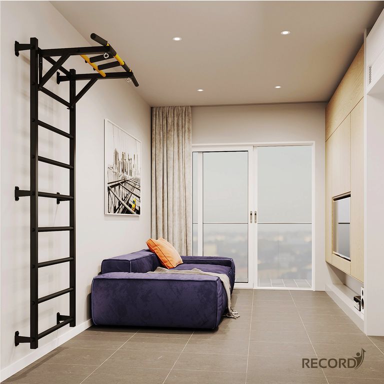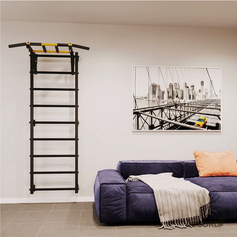 Шведская стенка с турником "Рекорд" X1 без опоры на пол - это первая в мире шведская стенка без опоры на пол.