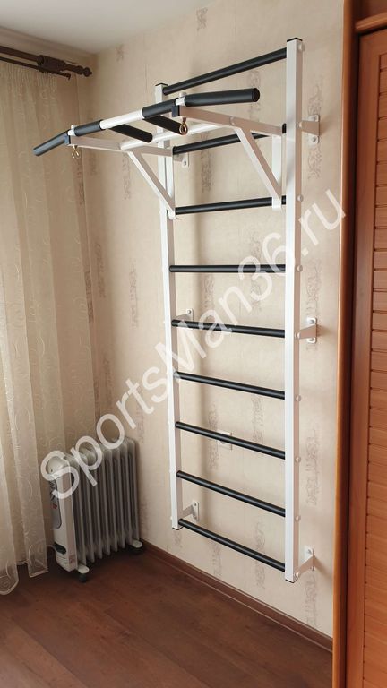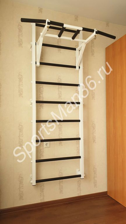 ведская стенка с навесным турником на 3 вида захвата. Эта модель подойдет для взрослых и детей.