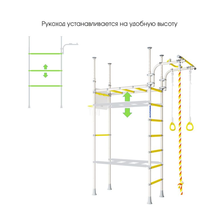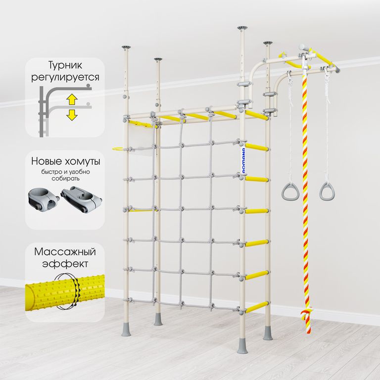 Как и во всех шведских стенках Romana, конструкция содержит перекладины со специальным покрытием, обеспечивающим массажный эффект.