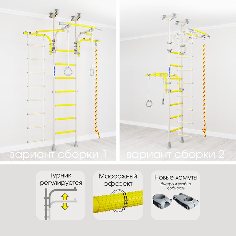 Как и во всех шведских стенках Romana, конструкция содержит перекладины со специальным покрытием, обеспечивающим массажный эффект.