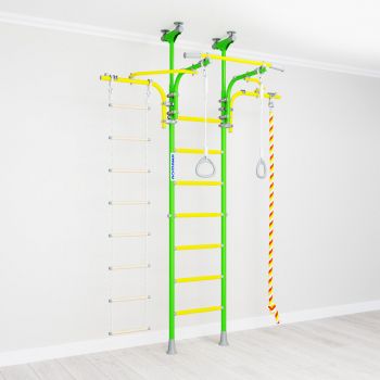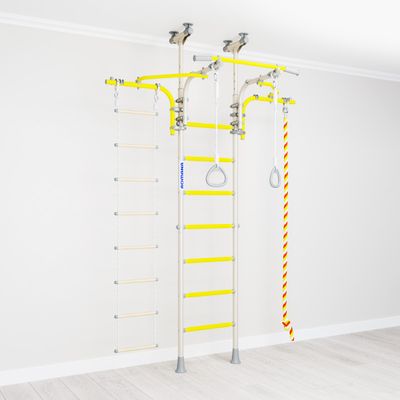 Турник данной шведской стенки передвигается по всей высоте без всяких усилий и без необходимости разбора спортивного комплекса.
