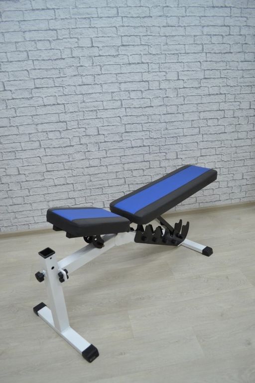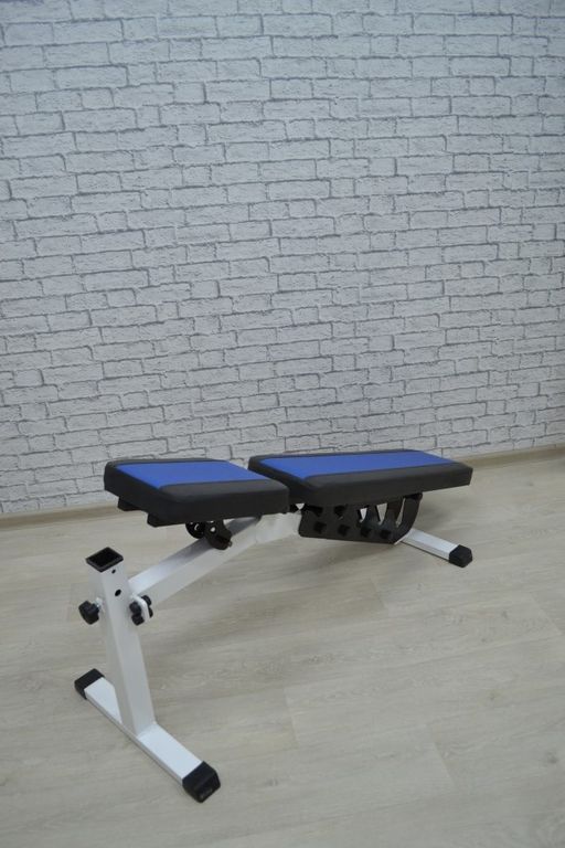 - Угол наклона сидения и спинки скамьи изменяется в пределах 85 градусов, причем наклон может быть как положительным, так и отрицательным.